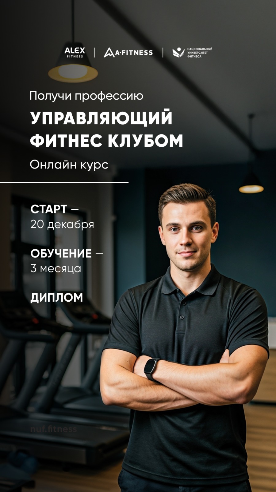 Лучшим студентам даём рекомендации и возможность стать сотрудником сети фитнес-клубов Alex Fitness и A-Fitness.